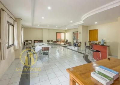 A área social é valorizada pela churrasqueira e varanda privativas, ideais para momentos de lazer e convívio social em um espaço exclusivo.