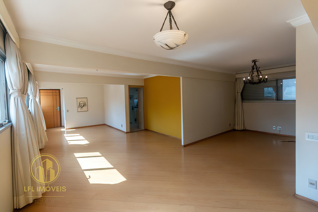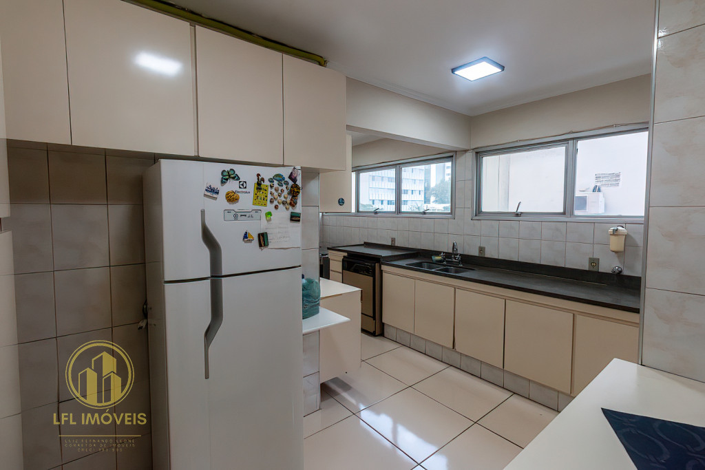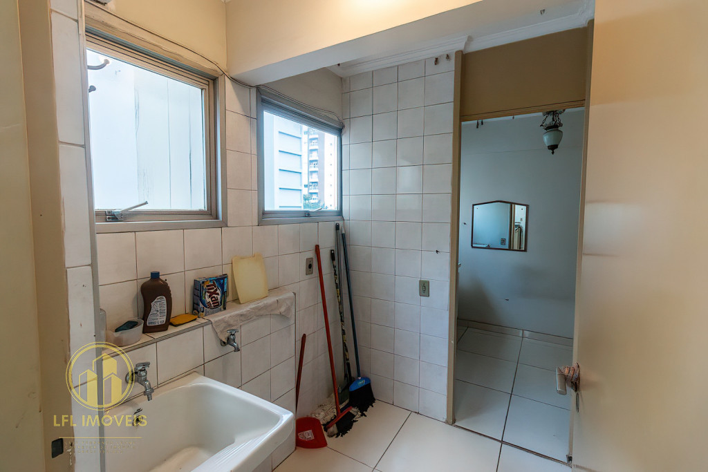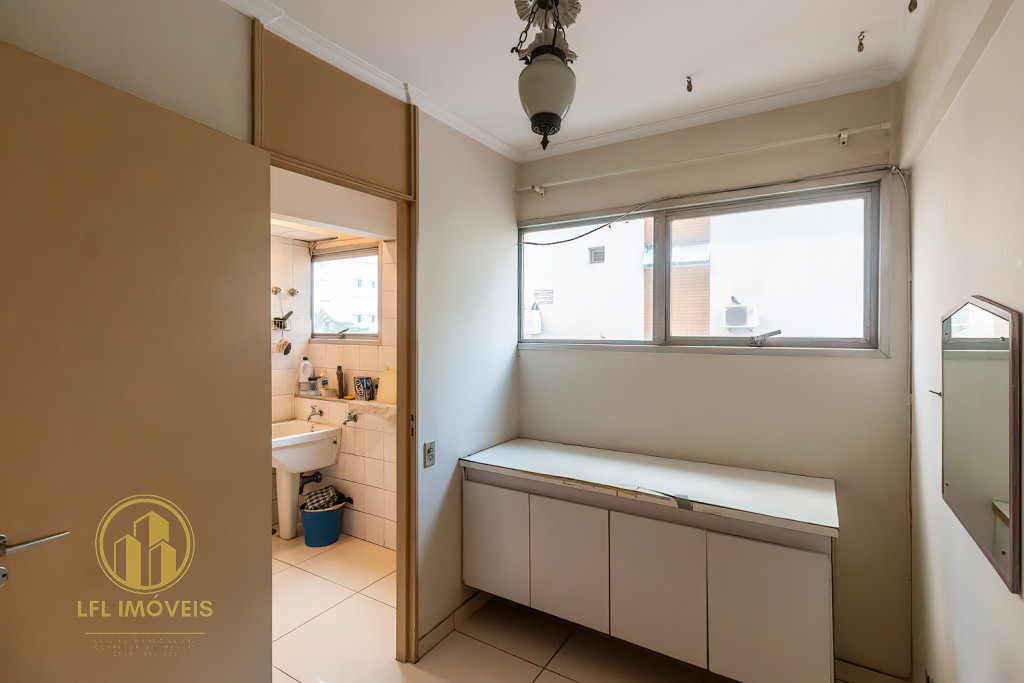 O imóvel dispõe de dois dormitórios, incluindo uma suíte, 1 banheiro social, sala com excelente iluminação e ventilação natural proporcionada por amplas janelas, integrada para sala de jantar, cozinha espaçosa e com armários, área de serviço completa com dependência de empregados.
