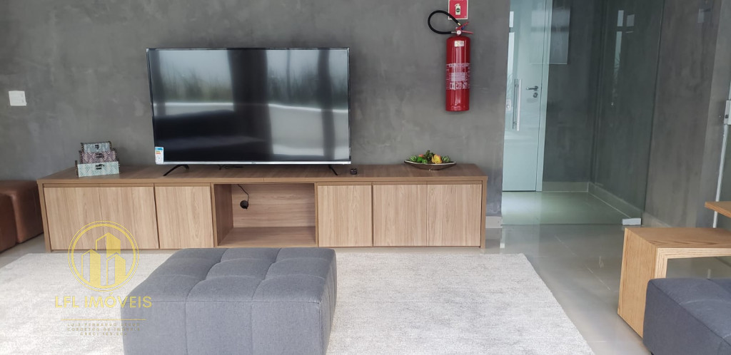 O imóvel dispõe de 1 dormitório e 1 banheiro, sala integrada com a cozinha americana equipada, área de serviço e varanda fechada. Completamente mobiliado, inclui ar condicionado, aquecedor a gás armários embutidos.